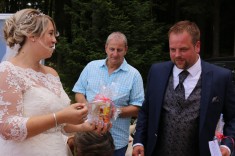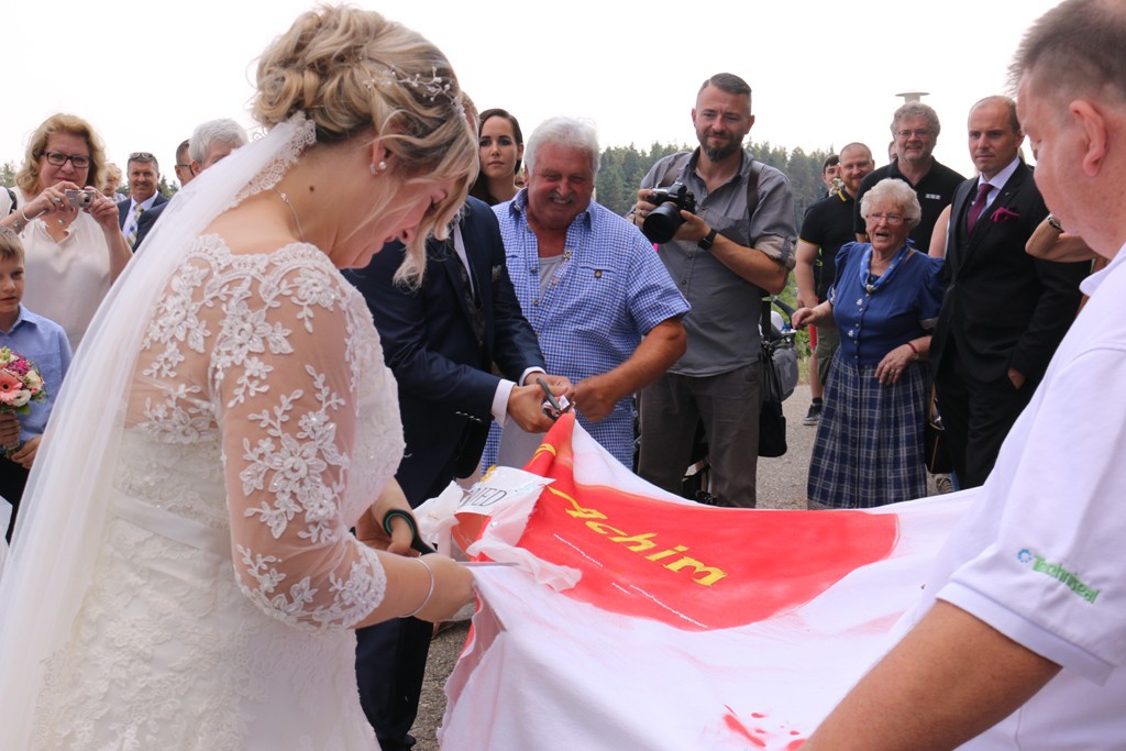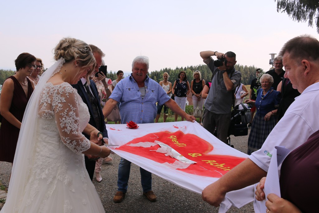 Die mitgebrachten Musik-Buam sorgten mit viel Witz, Spielen und Liedern für beste Stimmung. Erst am frühen Abend brach die Hochzeitsgesellschaft zur privaten Feier auf.