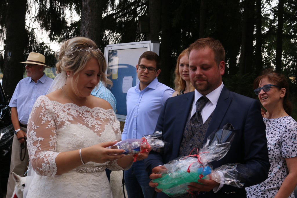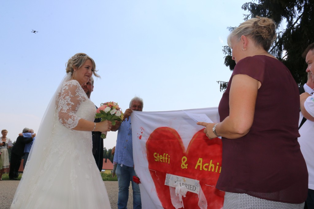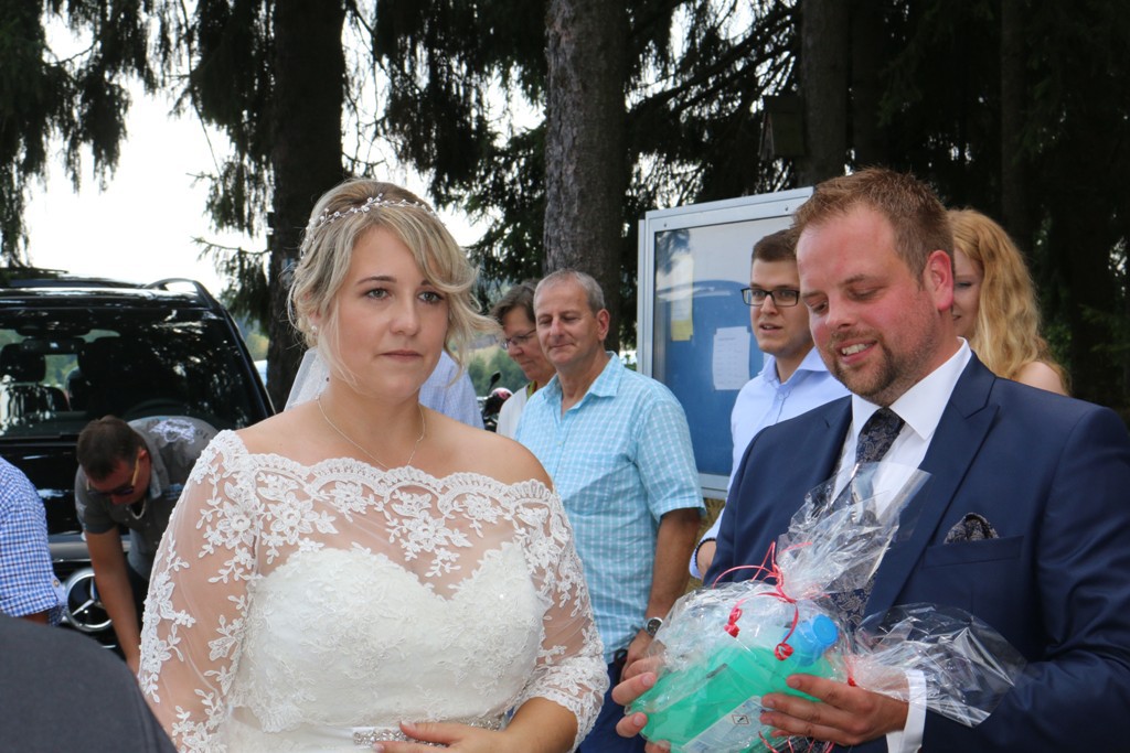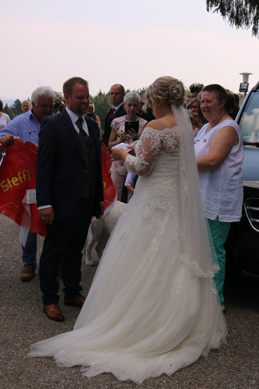 Nach einer Stunde war es dann soweit: ein strahlendes, glückliches Brautpaar kam heraus und es folgten Glückwünsche von allen Seiten.