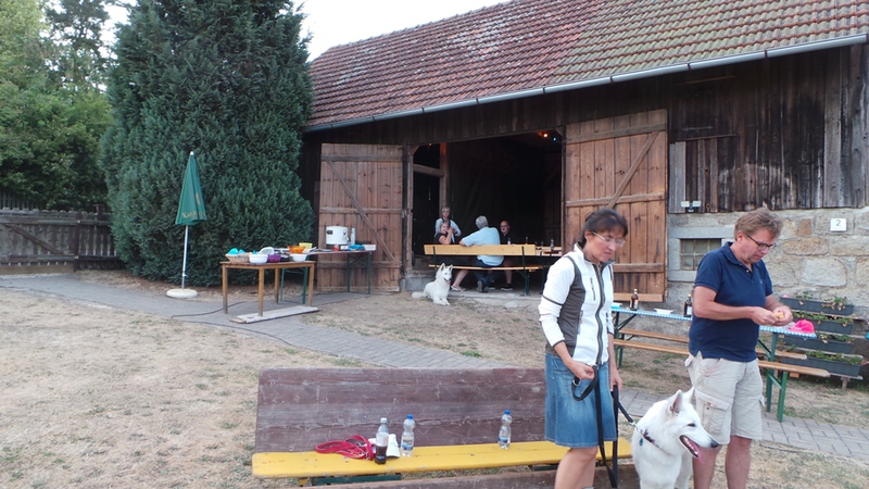 Ein schöner Spaziergang, ein Ringtraining , gemütliches Beisammensein mit netten Gesprächen über unsere Hunde, unsere kommende Ausstellung Frankensieger und vieles mehr bis spät in die Nacht, machten dieses Treffen zu einem sehr schönen Tag und Abend.