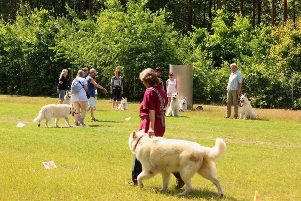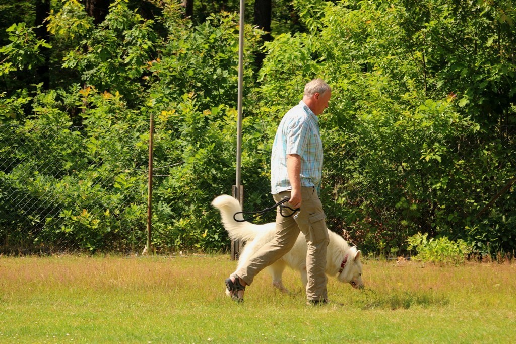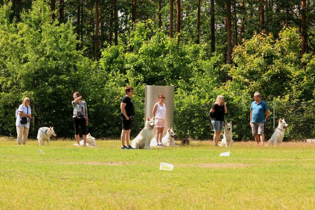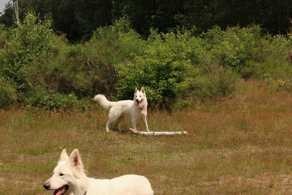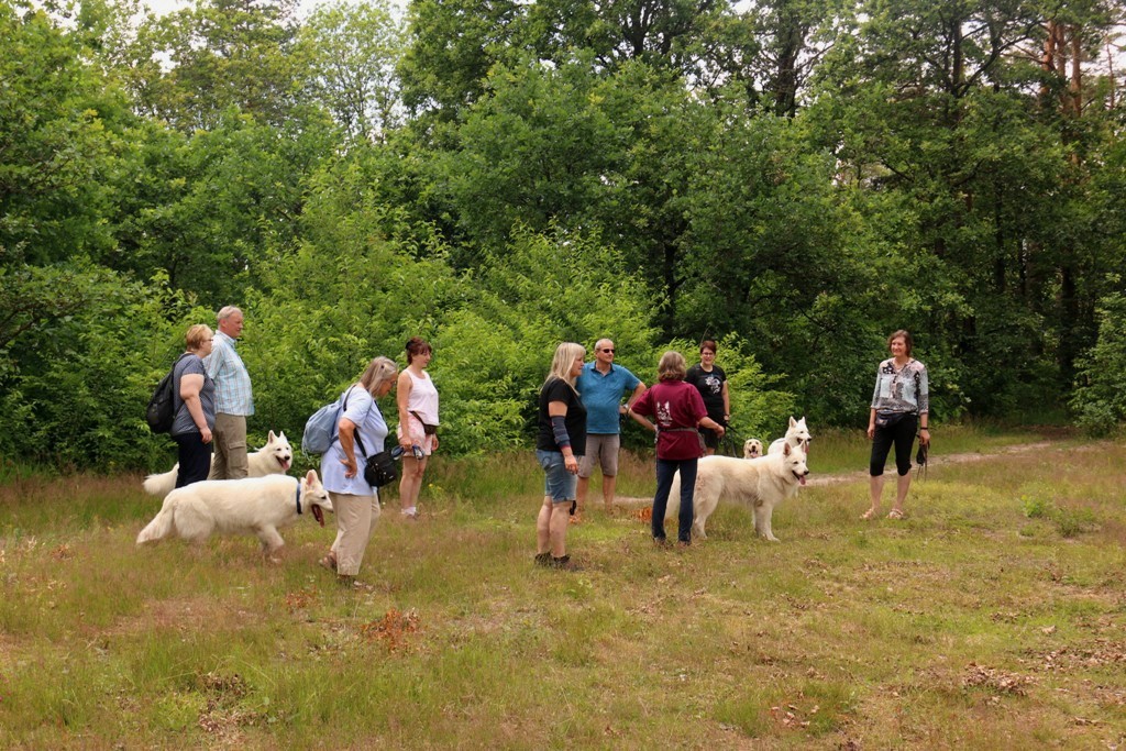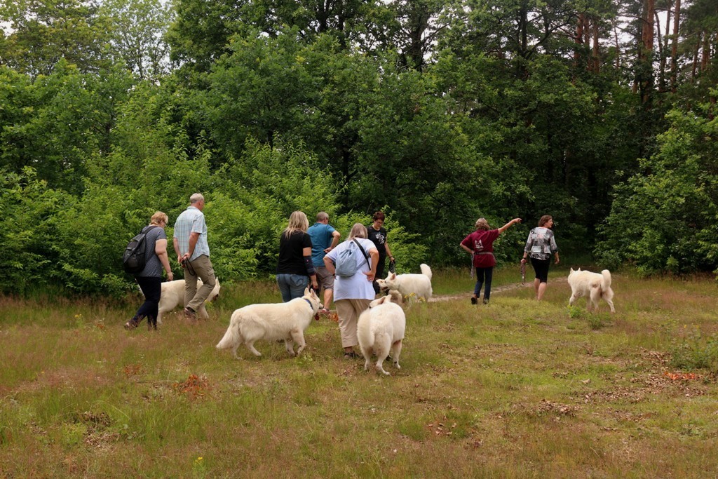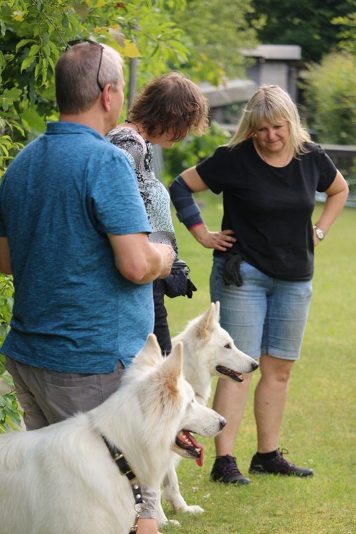 Zunächst konnten sich unsere Hunde nach der Anfahrt frei bewegen, miteinander spielen und dann beim Spaziergang auf schattigen, schmalen Waldwegen vieles erschnüffeln und entdecken. Wieder am Platz angekommen wurde gern von der Möglichkeit Gebrauch gemacht sich mit frischem Wasser abzukühlen. Frauchen und Herrchen zogen Kaffee und leckere Kuchen im schattigen Zelt vor. Für Abkühlung sorgte ein leichter Wind.