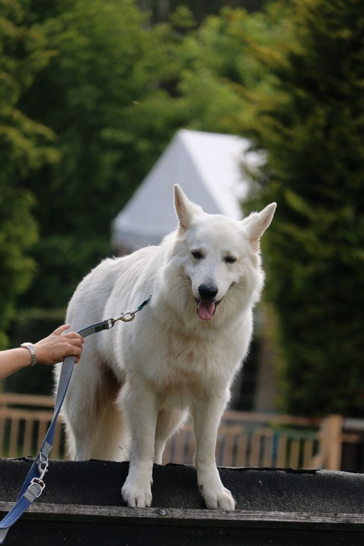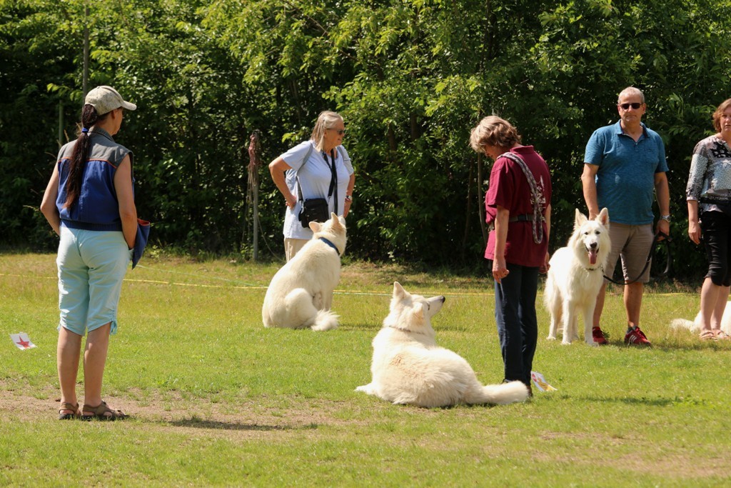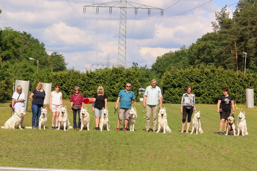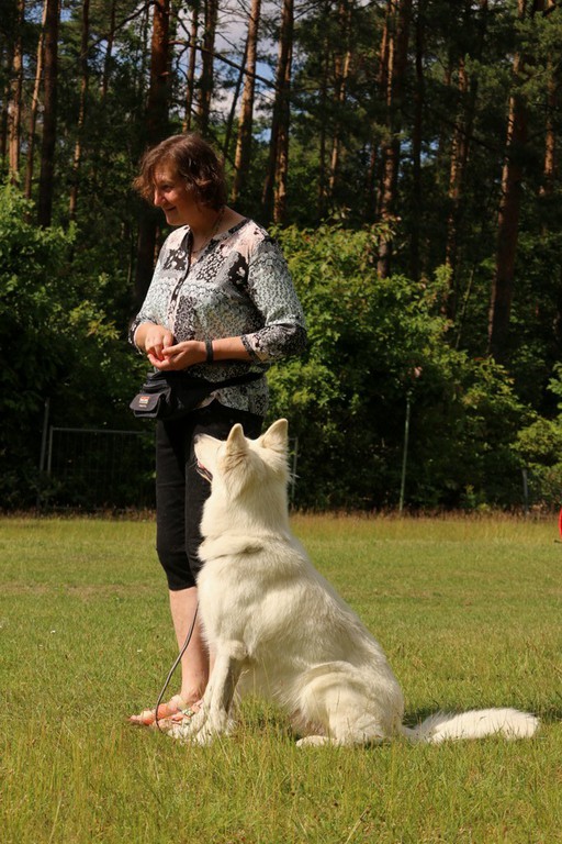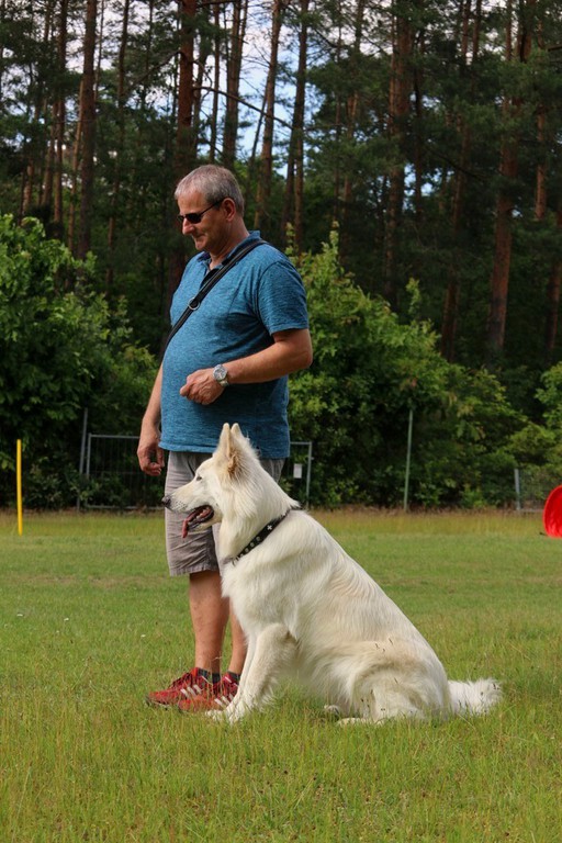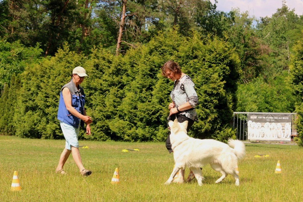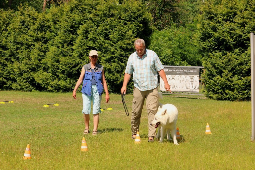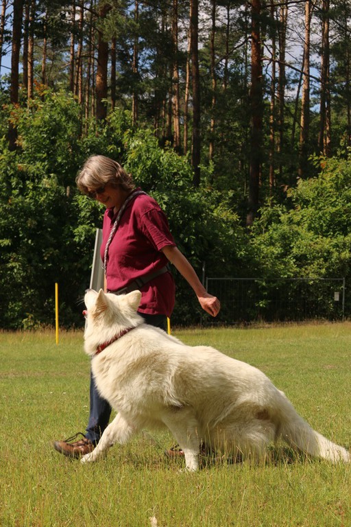 Bei den Obedience-Stationen war die enge Zusammenarbeit von Hund und Halter besonders gefordert. Sitz, Platz, Steh, Bleib, Drehung, Wende, Fuß usw., alles Dinge, die unsere Hunde im Einzelnen kennen, nun aber auf Kommando, Sicht – oder Hörzeichen im Ablauf ausführen mussten. Und sie konnten das! Super!