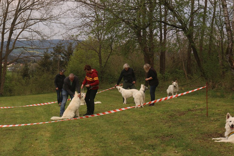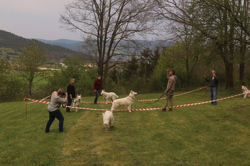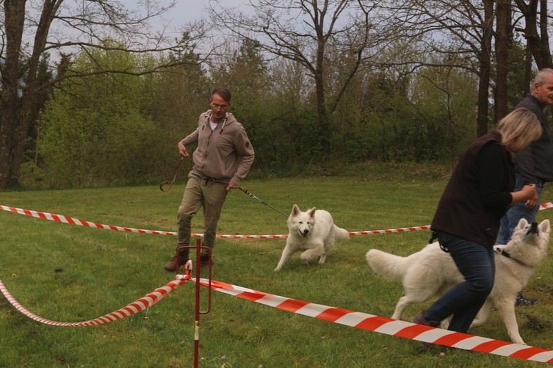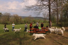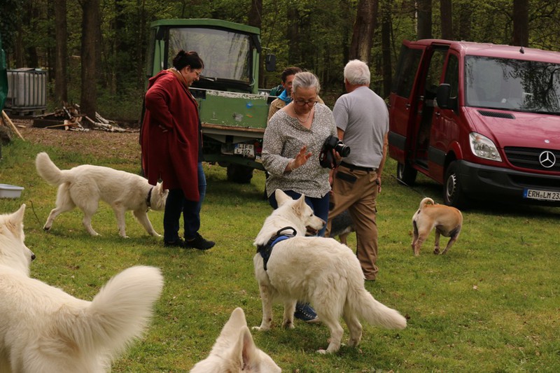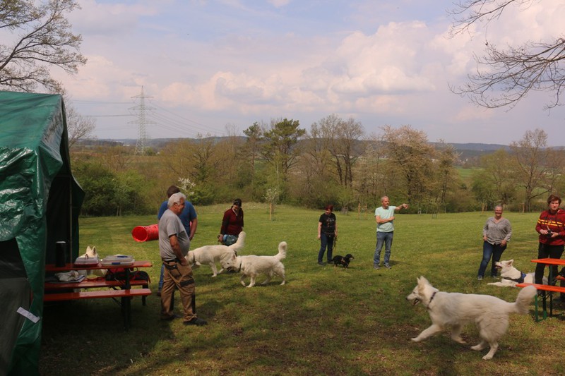 Das Wetter meinte es auch gut mit uns, so dass Sonja mit einigen Leinenhaltern und Hunden ein „Formationslaufen“ geübt hat, was wirklich jedem Spaß gemacht hat.
