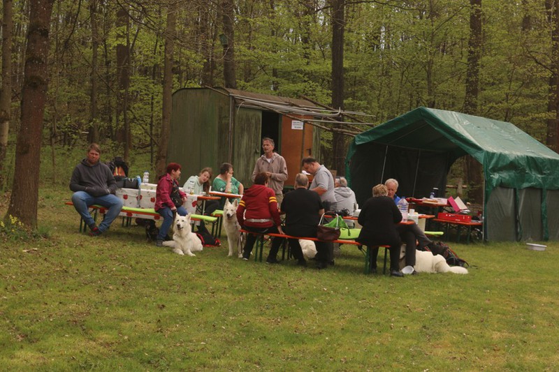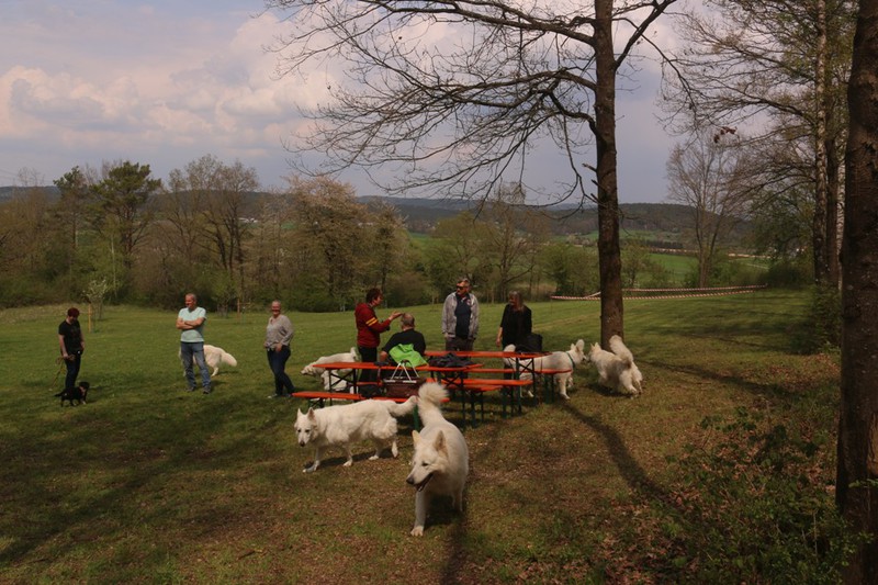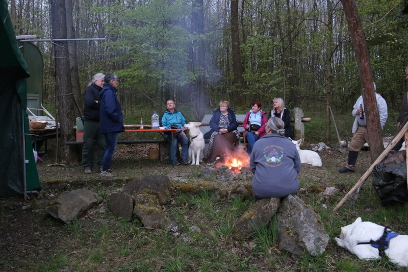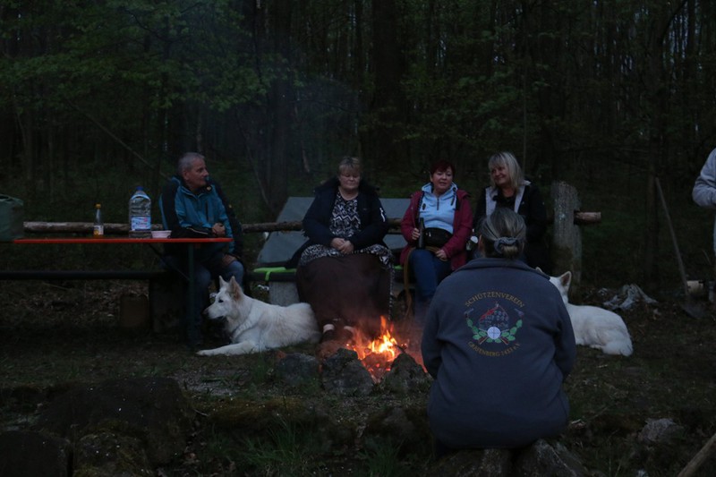 Die Hunde tobten danach über die Wiese und alle Teilnehmer saßen gemütlich zusammen. Jeder genoss es in vollen Zügen, dass ein Zusammenkommen wieder möglich war. Es gab viel zu erzählen und so blieb der Rest der LG Franken auch bis zur späten Stunde. Nachdem es abends ein bisschen frisch wurde, sorgte Werner für ein Lagerfeuer, an dem es angenehm war zu sitzen.