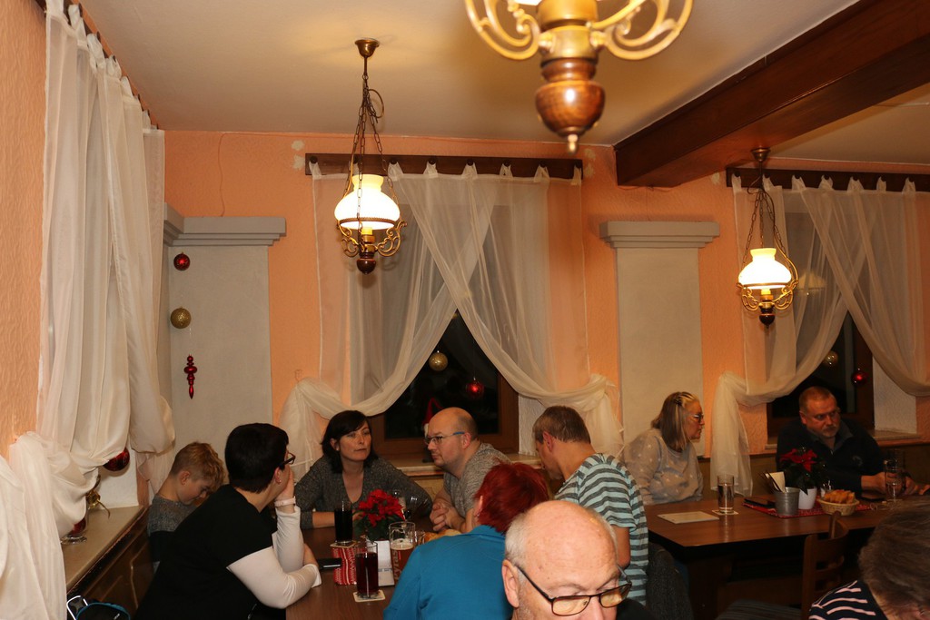 Es war ein schöner Abend unter Hundefreunden, die wieder die Gelegenheit wahrnahmen sich über alles Mögliche auszutauschen, Hundefutter, Erziehung, Urlaub mit Hund, lustige Begebenheiten, einfach alles „rund um den Hund“. Mit diesen Themen wird man nicht an einem Abend fertig. Es wurde spät und später, warum sollte man auch gehen wo es doch so gemütlich war! Die Hunde schliefen schon unter den Tischen und neben den Stühlen, die Bedienungen stiegen einfach drüber. Erst als es wirklich sehr spät geworden war brachen wir auf und stellten uns auf dem Rückweg der Kälte. Unsere Hunde ließen uns mit ihren Leuchthalsbändern auf dem zum Teil unbeleuchteten Weg sicherer gehen.